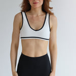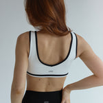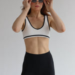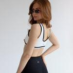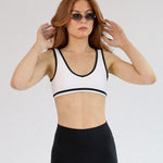 The Seamless V Neck Blake Crop brings vintage energy to your modern movement. This sleek, V-neck sports crop features bold black trim that contours the neckline and straps — adding just the right amount of edge to an otherwise minimalist silhouette.