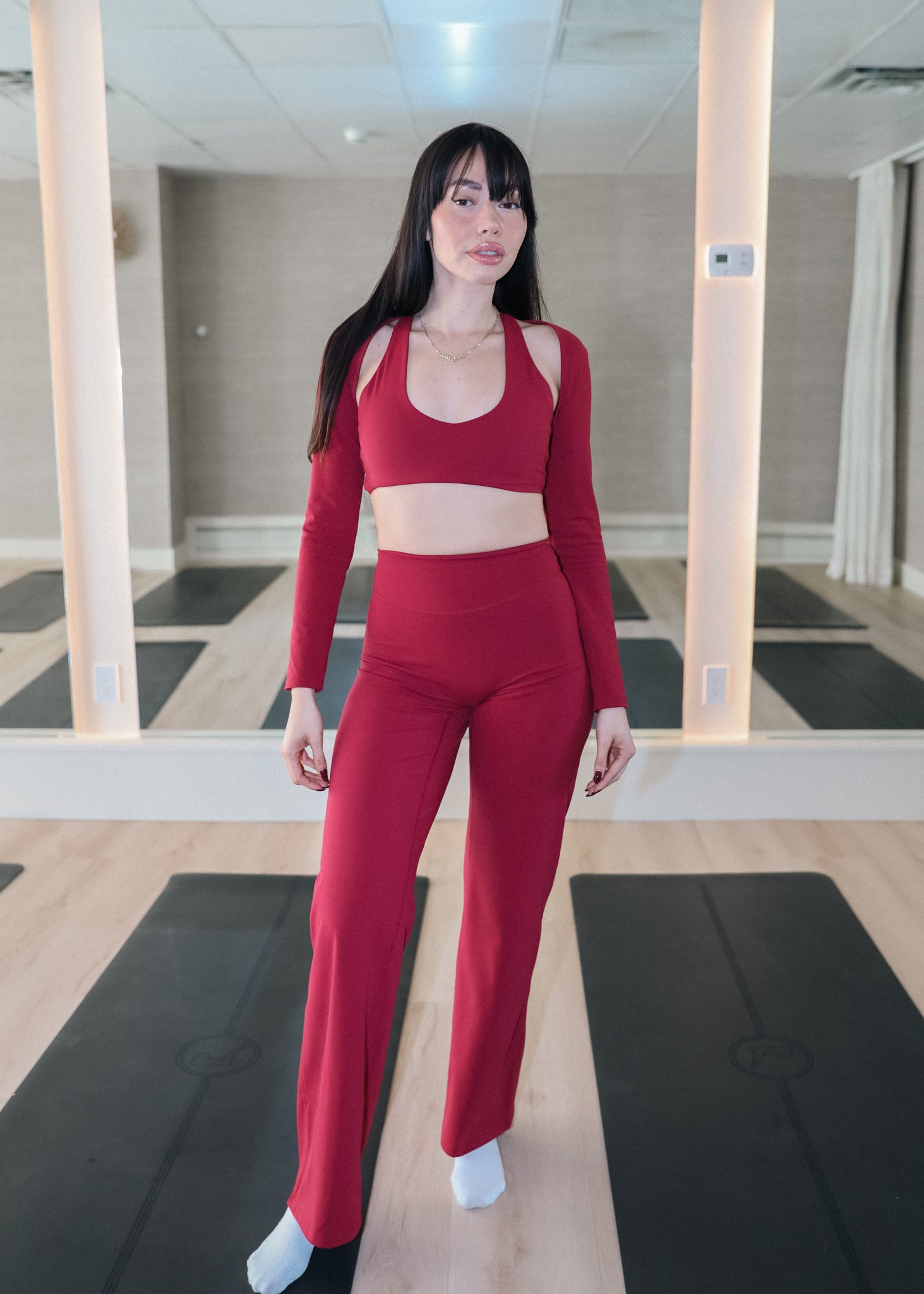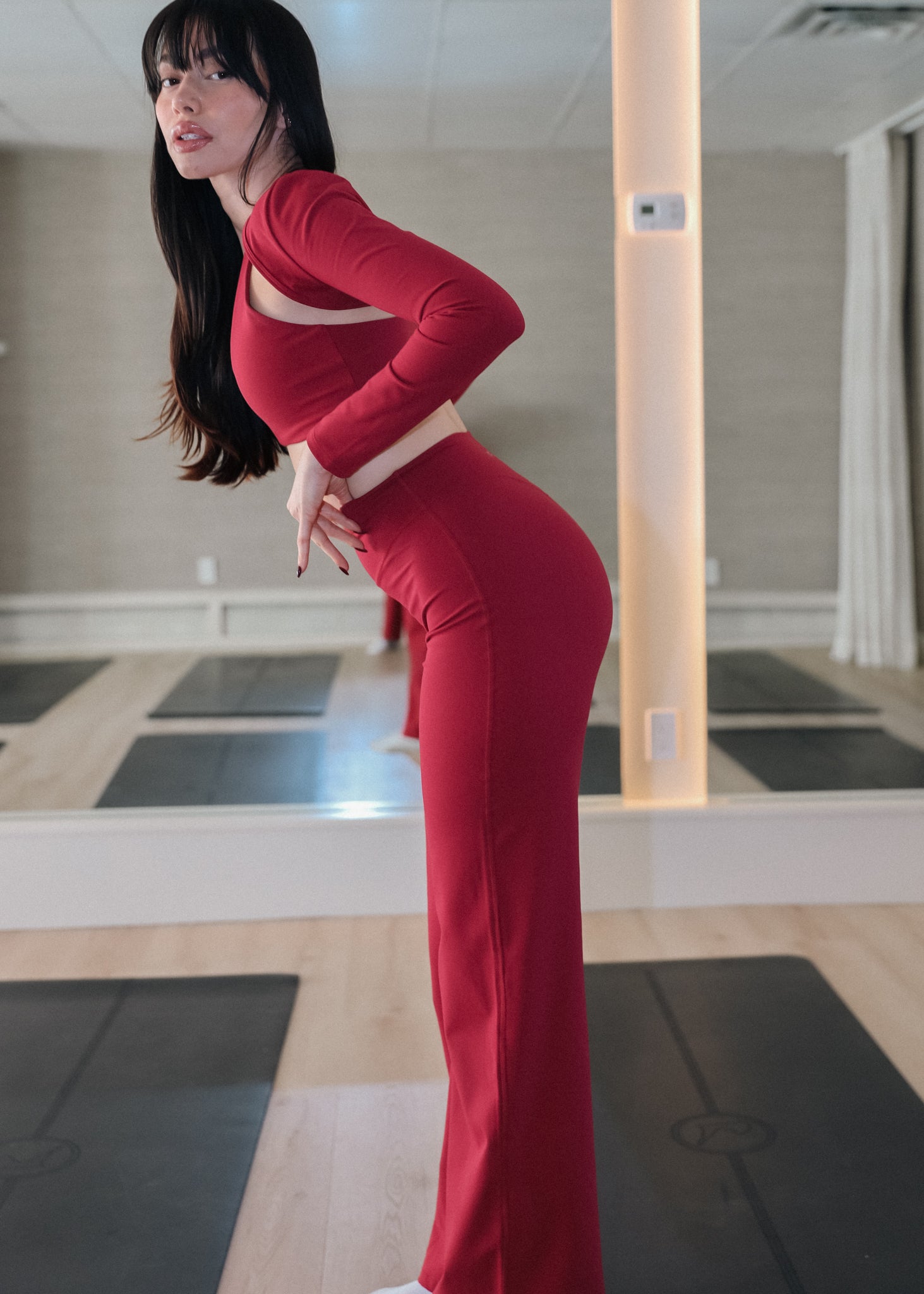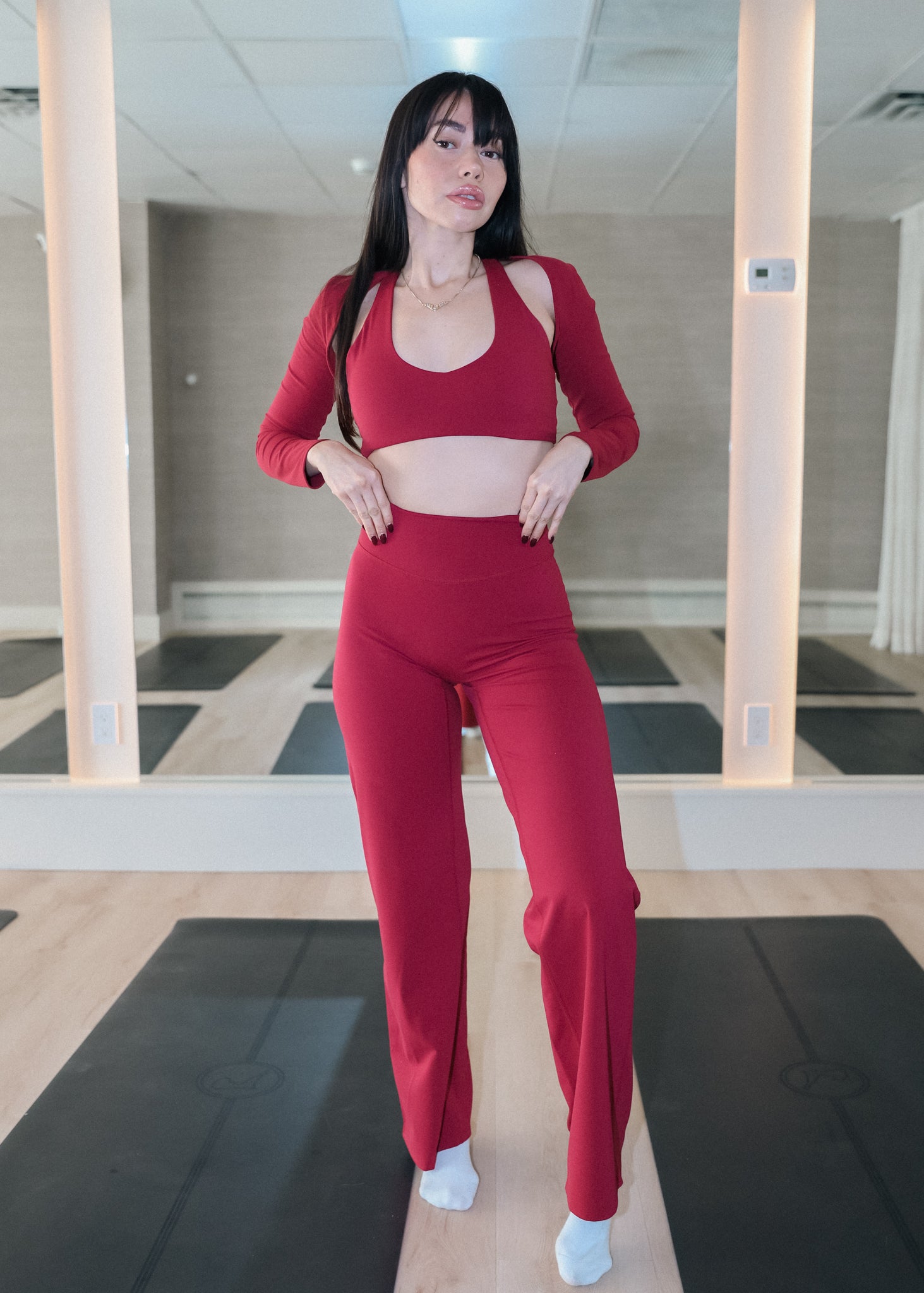The Nina 2.0 Flare Leggings are precision-engineered to sculpt through the hips and release into a naturally fluid flare. Developed over nearly a year of fabric testing and fit refinement, this silhouette was designed to lift, contour, and elongate — without sacrificing comfort.