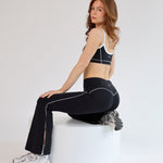 These high-waisted black leggings with a flare are designed to sculpt, smooth, and elongate your legs—giving you that effortless 90s silhouette with a modern, performance-ready fit.
